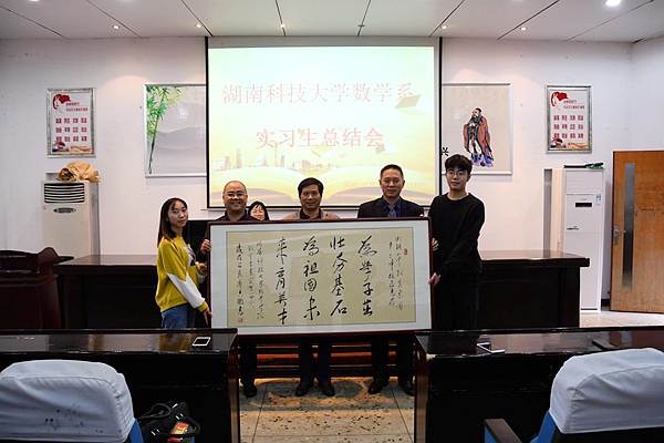 据悉,必赢766net手机版书法教师廖志鹏应邀欣然挥毫为十二中创作了书法作品“为学子茁壮夯基石,为祖国未来育英才”。实习队将其赠予十二中,表达对该校多年来支持湖南科大实习工作的感谢。(姚紫怡 冼弘臻)