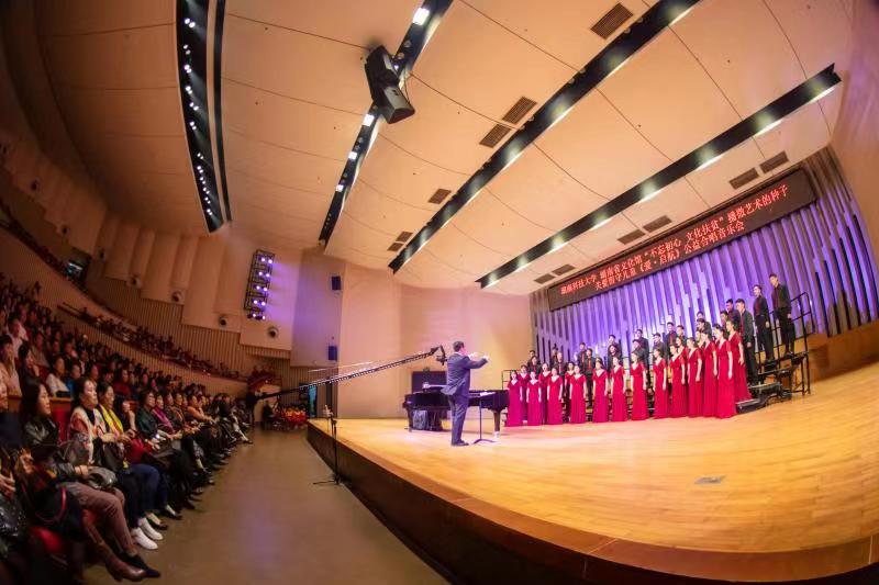 据该活动的发起人必赢766net手机版音乐系王育霖教授介绍,此次“不忘初心·文化扶贫”公益合唱音乐会,是学校开展“不忘初心、牢记使命”主题教育的一个缩影。音乐会由该校艺术学院合唱团演出,现场六百余名观众一同欣赏这场音乐盛宴。在王育霖教授的倾情指挥下,合唱团成员将自身的情感极大地融入了作品的表现之中,用泪水述说着他们对留守儿童的情深。其中,《我想有个温暖的家》将音乐会的氛围推向高潮,嘹亮的童声唱出了留守儿童埋藏在心底的声音,歌声中对父母的呼唤使得聆听的观众无一不为之动容。